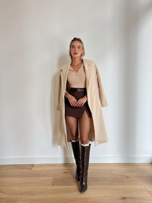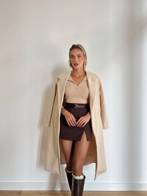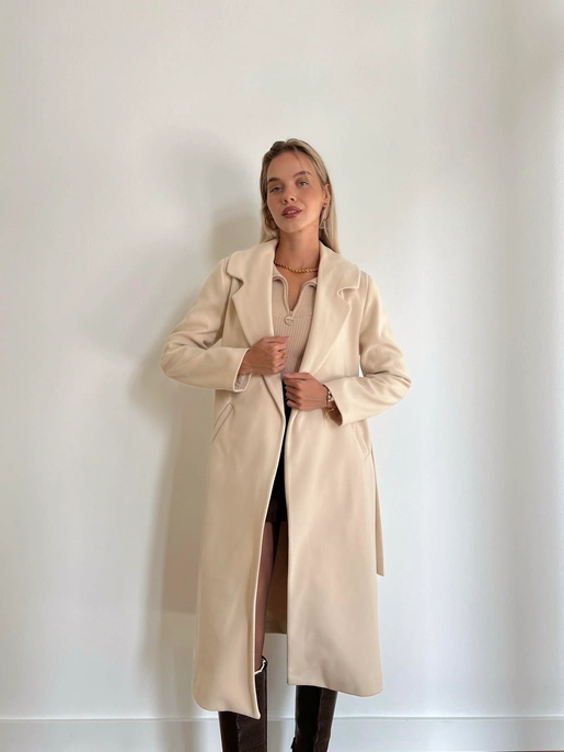 Belden Kuşaklı Olbia Kadın Bej Kaban