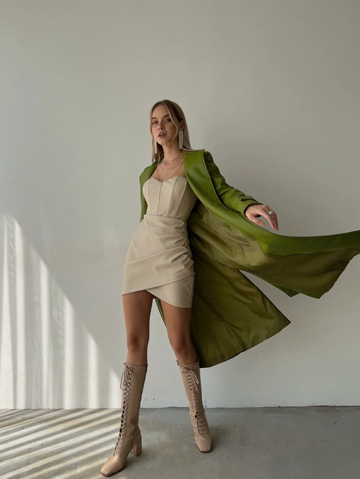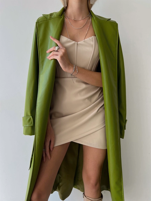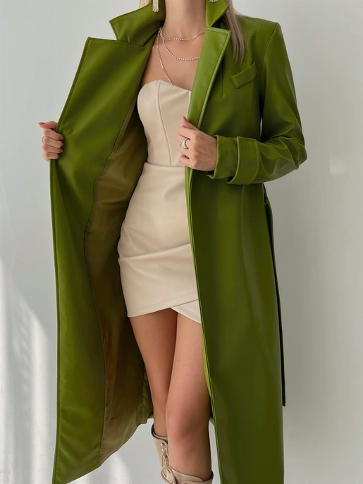 “Kolları Kemer Görünümlü Beli Kemerli Adali Kadın Yeşil Vegan Deri Kaban” için yorum yapan ilk kişi siz olun