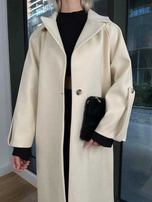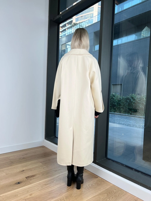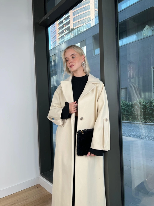 Önü düğme Detaylı Oversize Ganire Kadın Taş Kaban