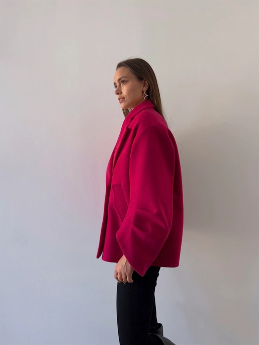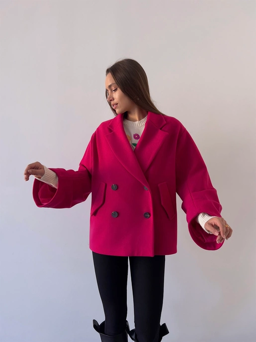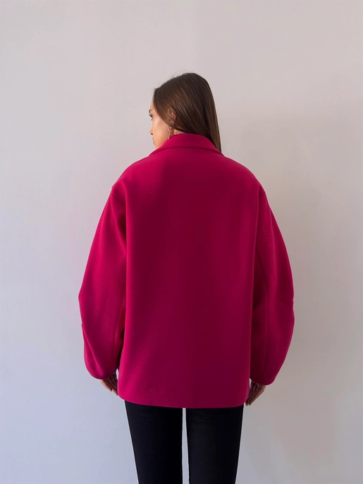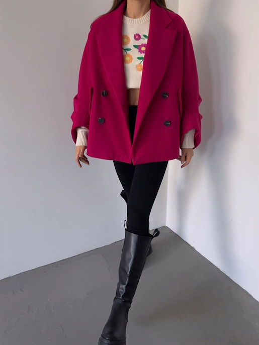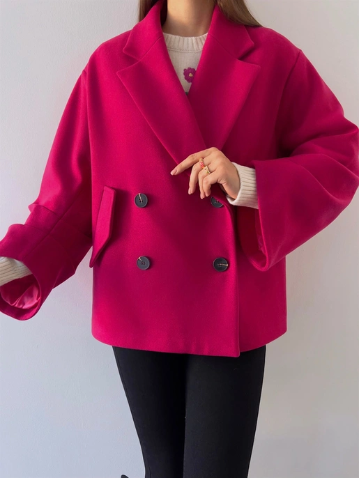 Önü Düğme Kapamalı Oversize Rosana Kadın Fuşya Kaban