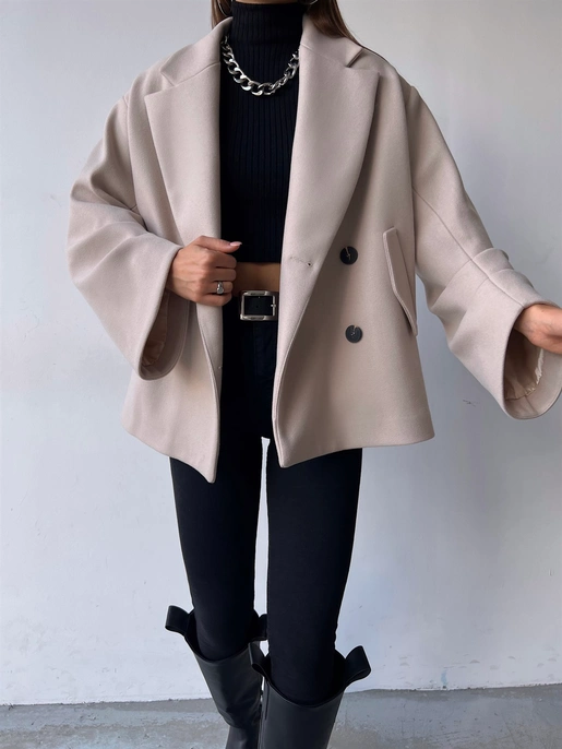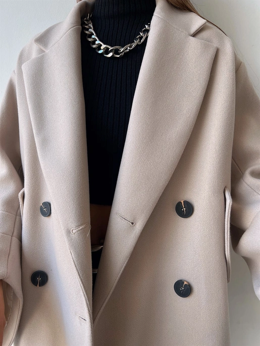 Önü Düğme Kapamalı Oversize Rosana Kadın Taş Kaban