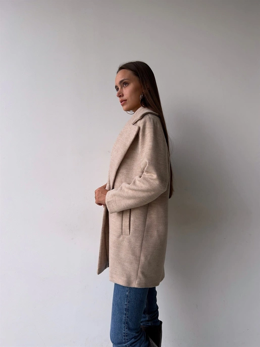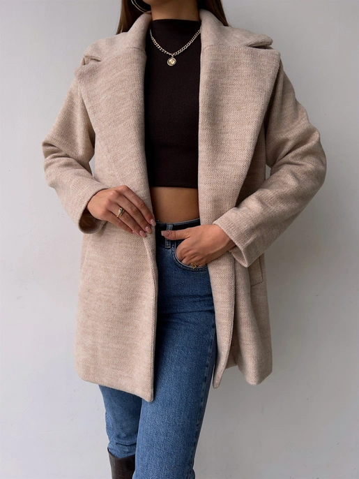 Tek Düğme Kapamalı Yanları Cepli Nerve Kadın Vizon Kaşe Kaban