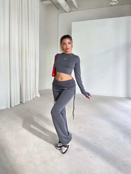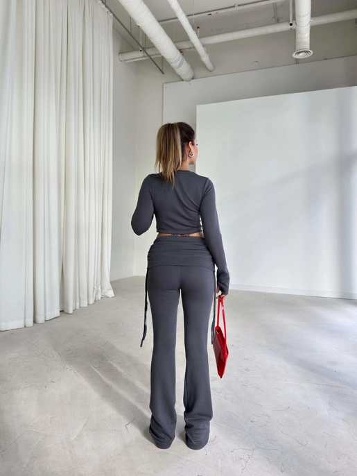 Yandan Ayarlanabilir İp Detaylı İspanyol Paça Basic Laran Antrasit Kadın İkili Takım