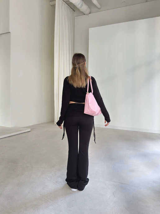 Yandan Ayarlanabilir İp Detaylı İspanyol Paça Basic Laran Siyah Kadın İkili Takım